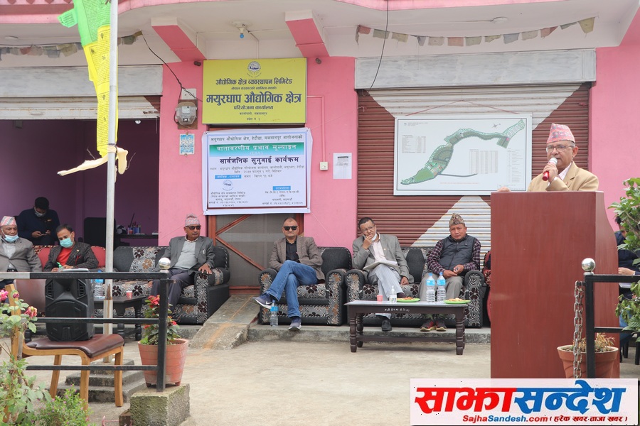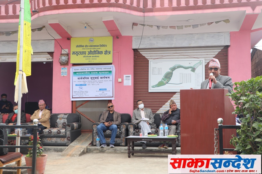 औद्योगिक क्षेत्र व्यबस्थापन लिमिटेडका निर्देशक सञ्जयलाल मानन्धरको सभाध्यक्षता तथा सविधानसभा सदस्य अनन्त प्रसाद पौडेलको प्रमुख आतिथ्यता सार्वजनीक सुनुवाई भएको हो । कार्यक्रममा प्रमुख अतिथि पौडेलले औद्योगिक क्षेत्र निर्माणले उक्त क्षेत्रका नागरिकको आर्थिक सामाजिक स्तर बृद्धि हुने बताउनुभयो । उहाँले आयोजना सञ्चालनका लागि स्थानीयको सहयोग महत्वपूर्ण हुने हुँदा सहयोग गर्न आग्रह समेत गर्नुभएको छ ।