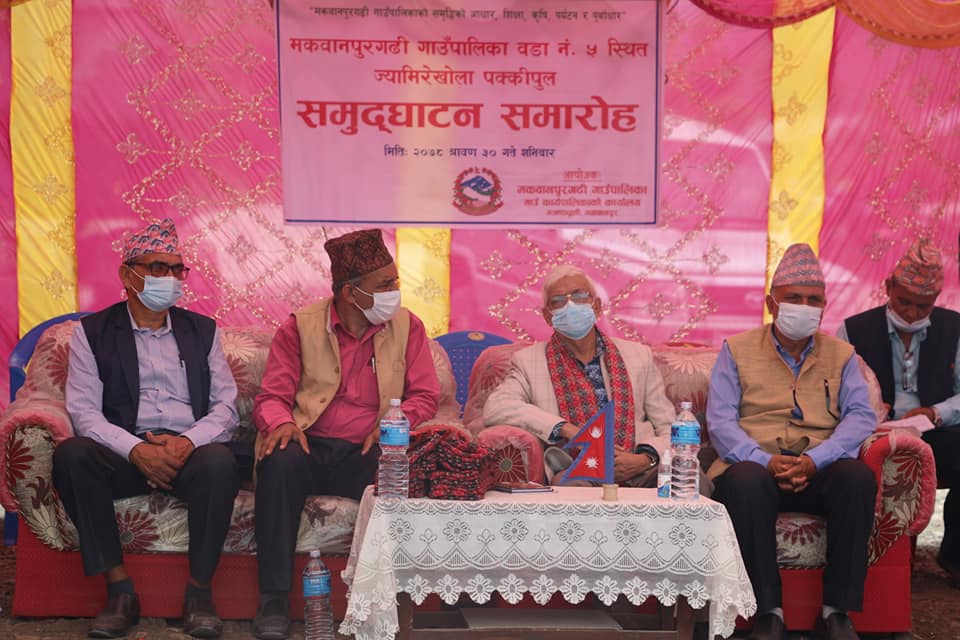मकवानपुर – बागमती प्रदेशका मुख्यमन्त्री डोरमणि पौडेलले बागमती प्रदेश सरकारले गरेको कामको उपलब्धीहरु जनताले महशुस गर्न थालेको बताउनुभएको छ । मकवानपुरको मकवानपुरगढी गाउँपालिका– ५, स्थित ज्यामिरे खोलामा निर्माण गरिएको पक्की पुलको शनिबार उद्घाटन गर्नुहुँदै मुख्यमन्त्री पौडेलले प्रदेश सरकारले जनताले महशुस गर्ने गरि काम गरेको बताउनुभएको हो ।