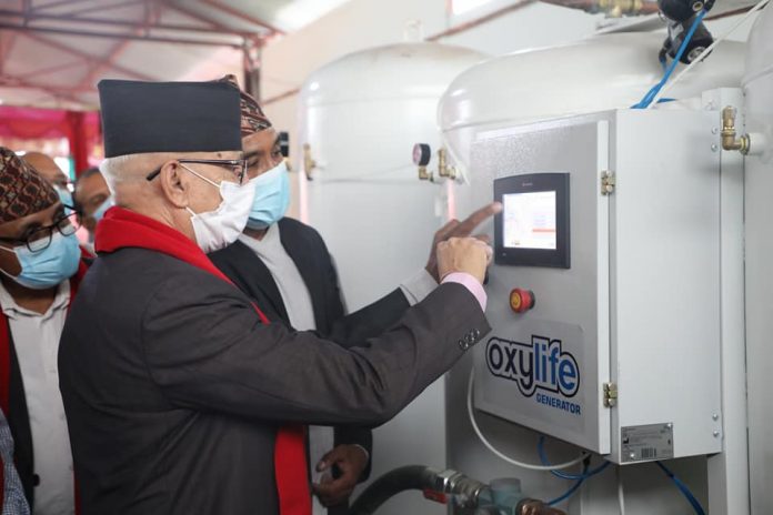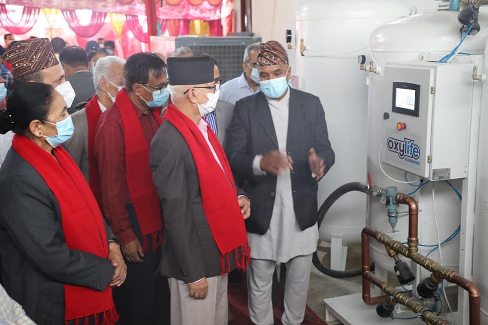 मकवानपुर – बागमती प्रदेशको राजधानी हेटौंडा स्थित मदन भण्डारी स्वास्थ्य विज्ञान प्रतिष्ठानद्धारा सञ्चालित हेटौंडा अस्पताललाई हेटौंडाका व्यवसायिहरुले अक्सिजन प्लान्ट हस्तान्तरण गरेका छन् । कोरोना संक्रमण बृद्धि भएसँगै अस्पतालामा अक्सिजन अभाव कम गर्ने उदेश्यका साथ उद्योग संघ मकवानपुरले विभिन्न उद्योगि व्यवसायिद्धारा रकम संकलन गरेर खरिद गरेको अक्सिजन प्लान्ट आइतबार अस्पताललाई हस्तान्तरण गरेकाे हाे ।