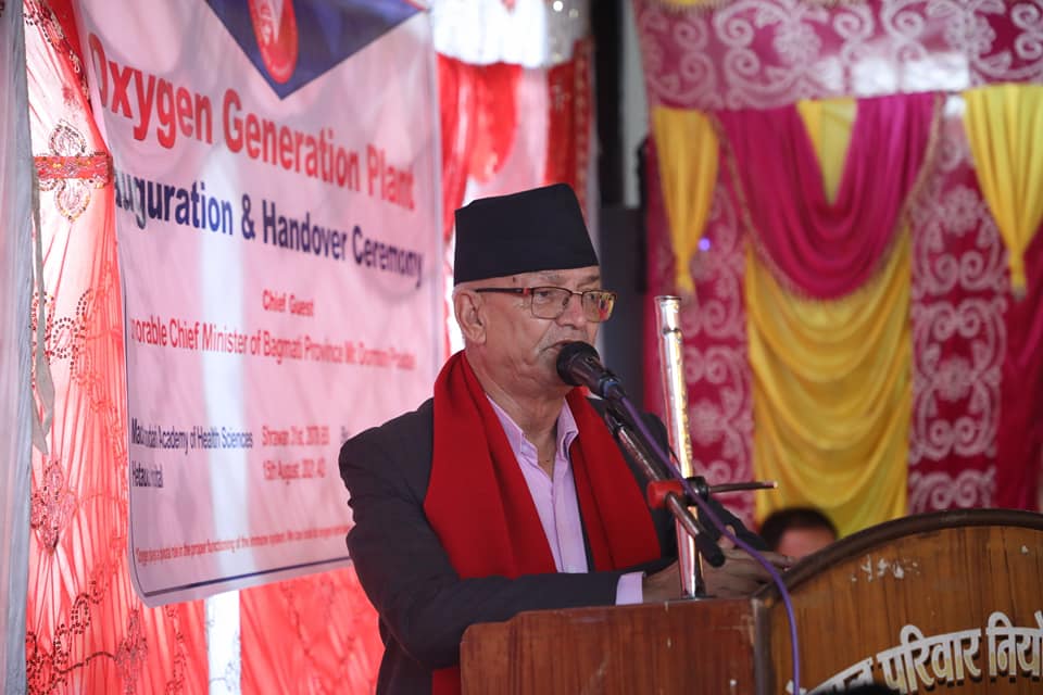 अक्सिजन प्लान्टको उद्घाटन गर्नुहुँदै मुख्यमन्त्री डोरमणि पौडेलले हेटौंडा अस्पतालको सेवा बृद्धि गर्न प्रदेश सरकार लागेको बताउनुभयो । दुइ वर्ष भित्र पाँच सय शैयाको अस्पताल निर्माण गर्ने लक्षयका साथ भवन निर्माणको काम भइरहेको वताउनुहुँदै मुख्यमन्त्री पौडेलले निजि क्षेत्रले समेत सहकार्य र सहयोग गरेको प्रति धन्यवाद व्यक्त गर्नुभयो । उहाँले अक्सिजन प्लान्टका लागि जिल्ला समन्वय समिति मकवानपुरले बिषेश पहल गरेको भन्दै प्रशंसा समेत गर्नुभयो । यस्तै जिल्ला ससमन्वय समिति मकवानपुरकै समन्वय र सहकार्यमा जिल्लामा सरुवा रोग अस्पताल निर्माणको काम अगाडी बढेको हुँदा त्यसमा सबैको साथ र सहयोग हुनु पर्ने उहाँको भनाई थियो । मुख्यमन्त्री पौडेलले प्रदेशको राजधानी भए पछि हेटौंडामा स्वास्थ्य तथा शिक्षा क्षेत्रमा आमुल परिर्वतन आएको बताउनुभएको छ ।