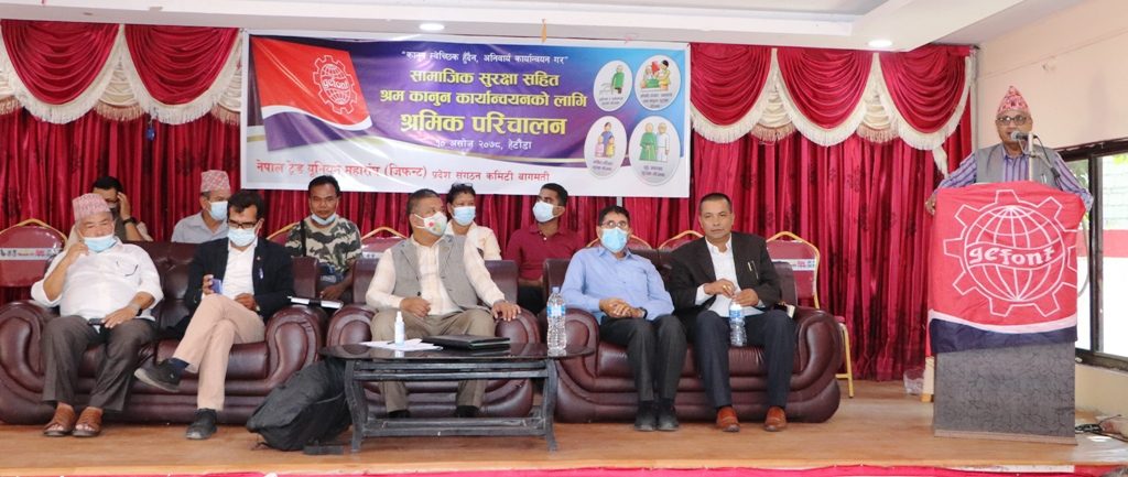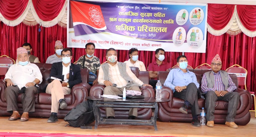 मकवानपुर – मकवानपुरमा आइतबार सामाजिक सुरक्षा सहित श्रम कानून कार्यान्वयनको लागि श्रमिक परिचालनका सन्दर्भमा अन्तरकृया कार्यक्रम सम्पन्न भएको छ । नेपाल ट्रेड युनियन महासंघ –जिफन्ट) बागमती प्रदेश कमिटीको आयोजनामा योगदानमा आधारीत सामाजिक सुरक्षा योजना कार्यान्वयन तथा श्रमिक कानुन कार्यान्वयनका सन्दर्भमा कार्यक्रम भएको हो ।