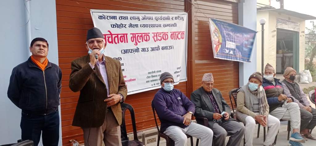 ९ नम्बर वडा अध्यक्ष लक्ष्मण प्रसाद भण्डारीको अध्यक्षतामा भएको कार्यक्रममा जिल्ला समन्वय समिति मकवानपुरका प्रमुख रघुनाथ खुलाललगायतको सहभागिता थियो । ९ नम्बर वडा कार्यालयको आयोजना तथा टोल विकास संस्था वडा समन्वय समितिको समन्वयमा अस्मिता नेपालले सडक नाटक प्रस्तुत गरेको हो । नाटक वडाका विभिन्न १२ स्थानमा प्रस्तुत हुने छ ।