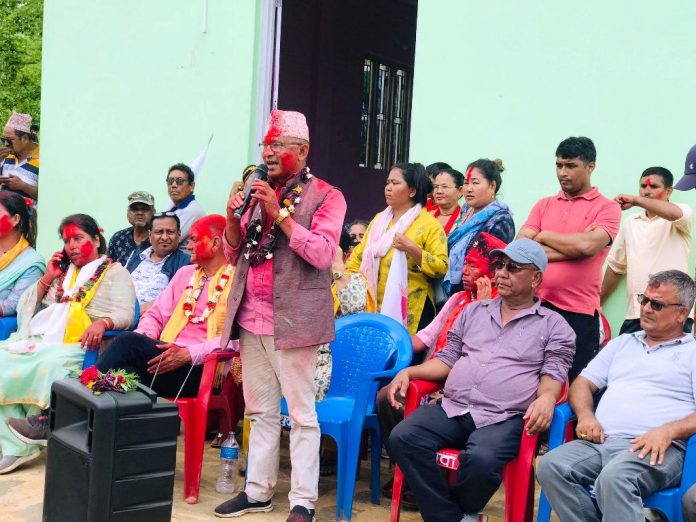 कार्यक्रममा नेकपा एमाले प्रदेशकमिटि सदस्य बलराम बलले बैशाख ३० गते निर्वाचनमा सत्य र असत्यबीचको लडाई हुने बताए । ‘एमालेको प्रतापदेखि विचलित भएर तथानामको गठबन्धन , नानाथरीको झण्डाहरु बोकेर आइरहेको छ ’, बलले भने , ‘१४ नम्वर वडामा दिपक खड्को विकासको अभियान देखेर अत्तालिएर १४ नम्वर निराशाजनक बनाउुनुपर्छ भनेर १९ वटै वडाबाट मान्छे जम्मा गर्न आफैमा लज्जास्द कुरा हो । ’ ‘बास्तवमा गठबन्धन निर्वाचन हारिसके ,’ उनले भने । ’ उनले हार्ने निश्चित भएपछि जातीय राजनिती गरिरको बताउदै वर्गीय राजनीती नै सम्पुर्ण समस्याको समाधान भएको बताउदै एमालेतर्फबाट मेयरमा उम्मेद्वार दिएका अनन्त पौडेललको तुलनामा कोहि नभएको टिप्पणी गरे ।