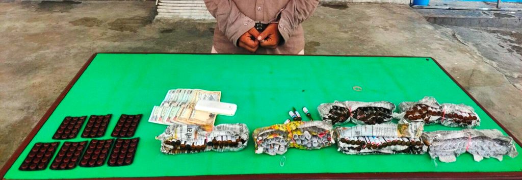 हेटौंडा ४ पारिजातपथ स्थित पैदल हिडिरहेका हेटौंडा ५ शान्तिनगर बस्ने १९ वर्षिय युवराज चौलागाईलाई पनि शंकास्पद लागेर जाँच गर्दा निजले लगाएको पाईन्टको खल्तीमा लुकाईइएको लागूऔषध नाईट्रोभ्याट ४५ ट्याबलेट फेला पारे पछि प्रहरीले लागु औषध सहित नियन्त्रणमा लिएको प्रहरीले जनाएको छ । हेटौंडा १० बसपार्कबाट मकवानपुर जिल्ला बकैया गाउँपालिका वडा नंबर ४ छतिवन घर भई हाल हेटौंडा ११ थानाभर्याङ डेरा गरी बस्ने ३३ वर्षीय लक्ष्मण घलान पनि पक्राउ परेका छन् । घलानको झोला जाँच गर्दा लागु औषध नुर्फिन १०० एम्पुल, डाइजेपाम १०० एम्पुल, फेनारगन १०० एम्पुल र नाईट्रोभेट १०५ वटा ट्याबलेट फेला परेकोले लागुऔषध सहित उनलाई नियन्त्रणमा लिएको जिल्ला प्रहरी कार्यालय मकवानपुरका प्रहरी प्रवक्ता टेकबहादुर कार्कीले बताए । उनले पक्राउ परेका तीनैजना माथि आवश्यक अनुसन्धान भईरहेको बताए ।