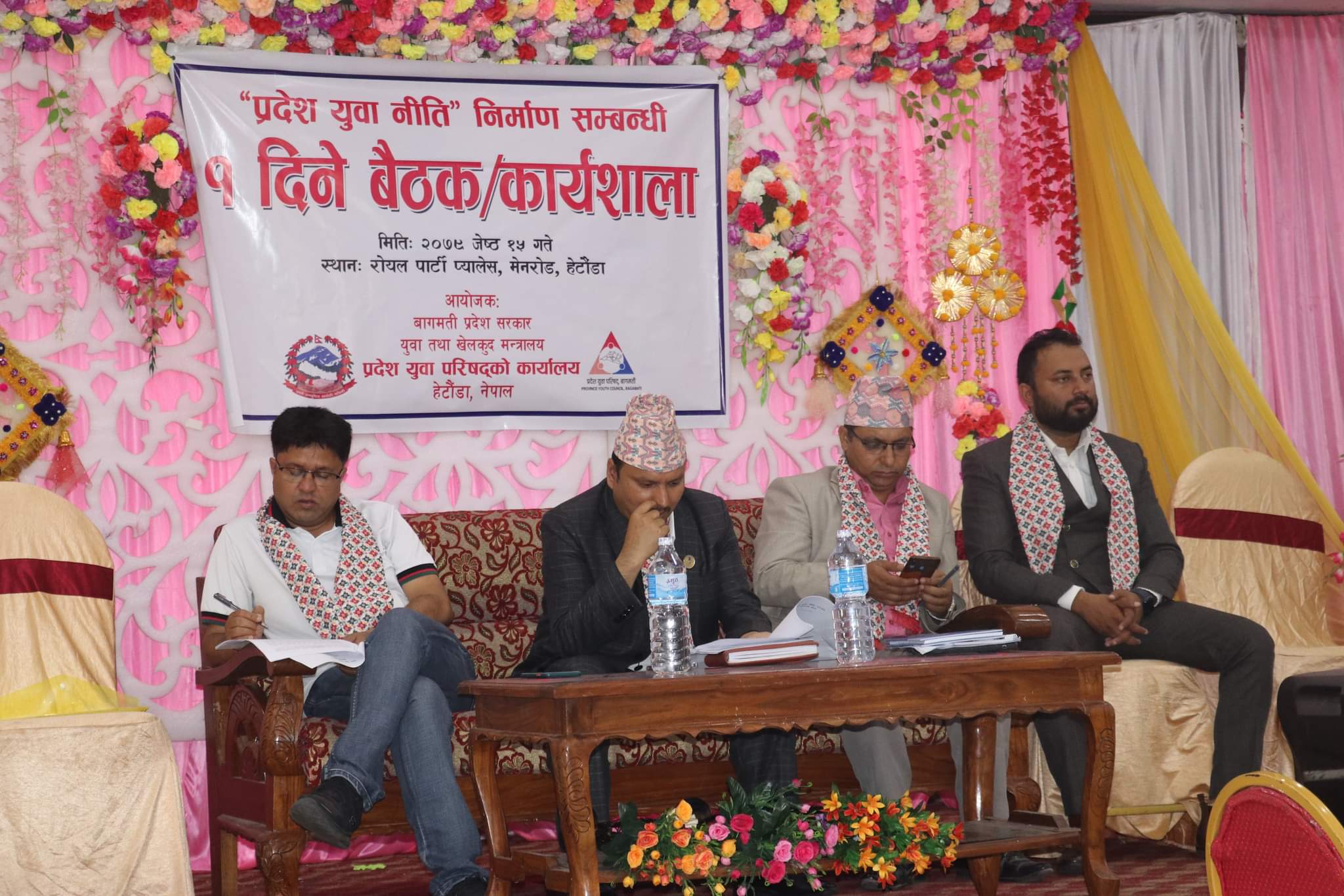 हेटौंडा । युवा परिषद बागमती प्रदेशले प्रदेश युवा नीतिको मस्यौदामाथि छलफल गरेको छ । हेटौंडामा आज भएको कार्यक्रममा सरोकारवालाहरुले प्रदेशभित्र रहेका युवाहरुहरुको क्षमता विकास गर्दै रोजगारी र उत्पादनमा जोड्ने नीति आवश्यक रहेको सुझाव दिएका थिए ।