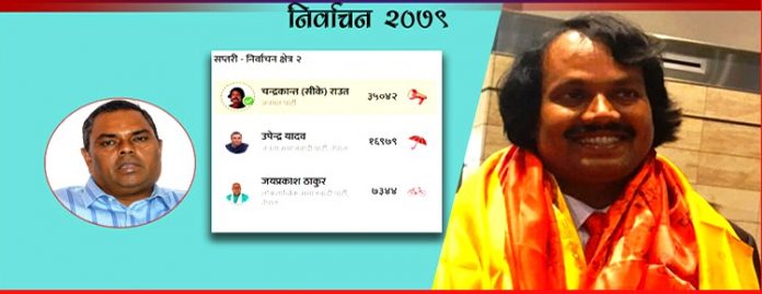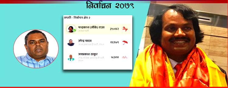 सप्तरी क्षेत्र नम्बर २ बाट जनमत पार्टीका अध्यक्ष सिके राउत भारी मतका साथ प्रतिनिधि सभा सदस्यमा निर्वाचित भएका छन् । निकटतम् प्रतिद्वन्द्वी जनता समाजवादी पार्टी नेपालका अध्यक्ष उपेन्द्र यादवलाई १८ हजार ६३ मतान्तरले पराजित गरेका हुन् । राउतले ३५ हजार ४२ मत प्राप्त गरे । पराजित उपेन्द्र यादवले १६ हजार ९७९ मत ल्याए ।