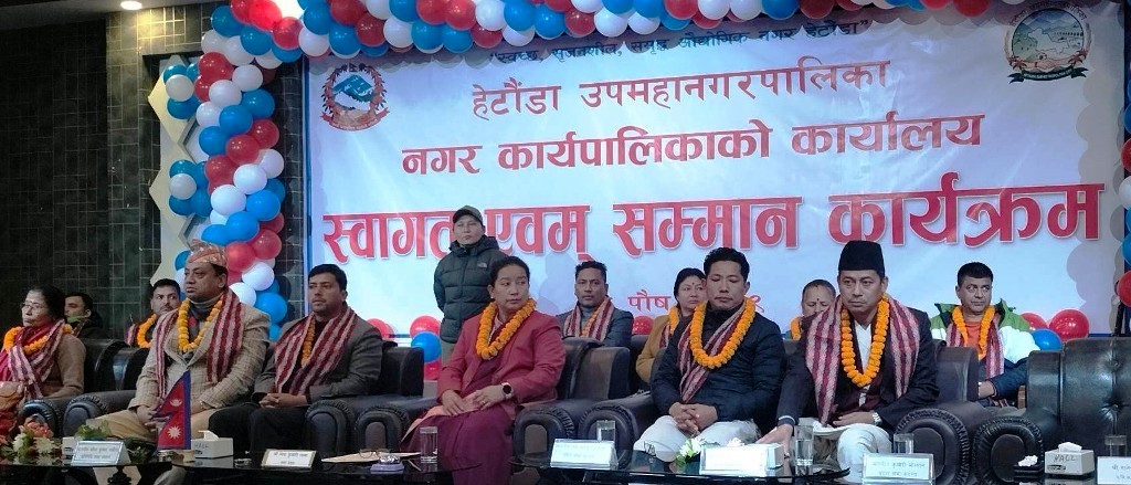 उपमहानगरपालिकाले मकवानपुर निर्वाचन क्षेत्र नम्बर २ बाट प्रतिनिधिसभा सदस्यमा निर्वाचित महेश कुमार बर्तौला, बागमती प्रदेश सभा सदस्यमा निर्वाचित इन्द्र बहादुर बानियाँ, प्रेम बहादुर पुलामी, एकालाल श्रेष्ठ, भारती पाठक र लक्ष्मी देवी श्रेष्ठलाई सम्मान गरिएको हो । हेटौंडा उपमहानगरपालिकाकी प्रमुख मिना कुमारी लामाको सभाध्यक्षमा भएको कार्यक्रममा जिल्ला प्रशासन कार्यालय मकवानपुरका प्रमुख राजेन्द्रदेव पाण्डे, उपमहानगरपालिकाका प्रमुख प्रशासकीय अधिकृत शिवराज चौलागाईं लगायतको आतिथ्य रहेको थियो ।