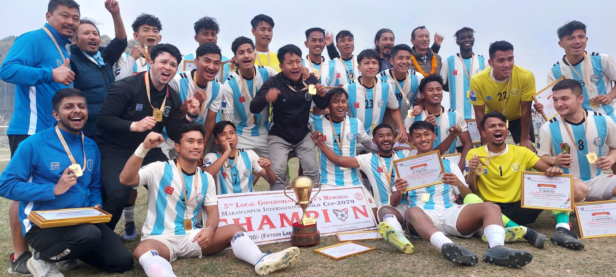 मकवानपुर – पाँचौ संस्करणको ‘सहिद स्मृति स्थानीय तह अन्तर्राष्ट्रिय फुटबल प्रतियोगिता–२०७९’ मकवानपुर गोल्डकपको उपाधि मनाङ मस्र्याङदी क्लबले जितेको छ । बुधबार हेटौंडा–५, स्थित क्याम्पारंगशालामा भएको खेलमा हिमालयन शेर्पा क्लबलाई १–० गोलअन्तरले पराजित गर्दै मनाङले उपाधि हात पारेको हो ।