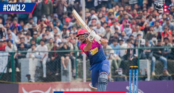 आइसिसी पुरुष विश्वकप क्रिकेट लिग–२ को त्रिकोणात्मक एकदिवसीय शृङ्खलाको अन्तिम खेलमा संयुक्त अरब इमिरेट्स (युएई)ले नेपाललाई जितका लागि ३११ रनको विशाल लक्ष्य दिएको छ । कीर्तिपुरस्थित त्रिभुवन विश्वविद्यालयको क्रिकेट मैदानमा आज जारी खेलमा टस जितेर पहिले ब्याटिङ रोजेको युएईले निर्धारित ५० ओभरमा ६ विकेटको क्षतिमा ३१० रनको विशाल योगफल बनाएको हो । एक दिवसीय अन्तर्राष्ट्रिय क्रिकेटमा नेपालले पहिलो पटक यति ठूलो रनको लक्ष्य प्राप्त गरेको हो ।