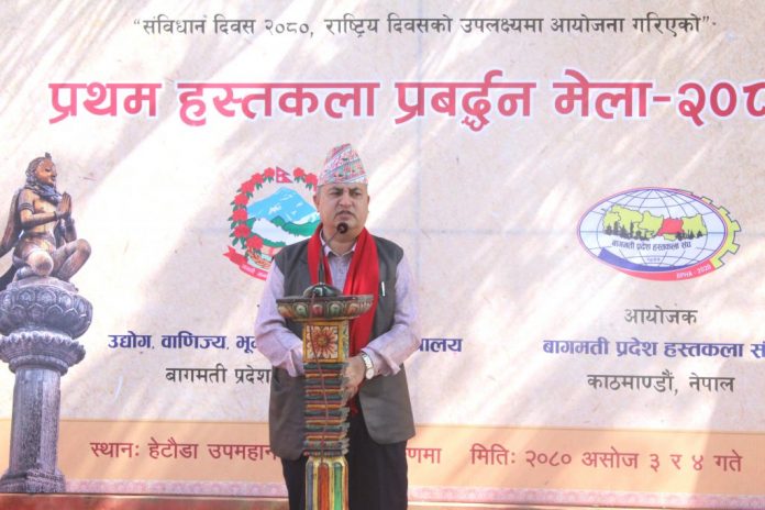 हेटौँडा । बागमती प्रदेशका मुख्यमन्त्री शालिकराम जम्कट्टेलले प्रदेशमा हस्तकला विधेयक तयार भसकेको बताउनुभएको छ । संविधान दिवसका अवसरमा हस्तकला सङ्घ वाग्मती प्रदेश कार्यालयले आयोजना गरेको प्रदर्शनीमा उहाँले यस्ताे बताउनुभएको हो ।
