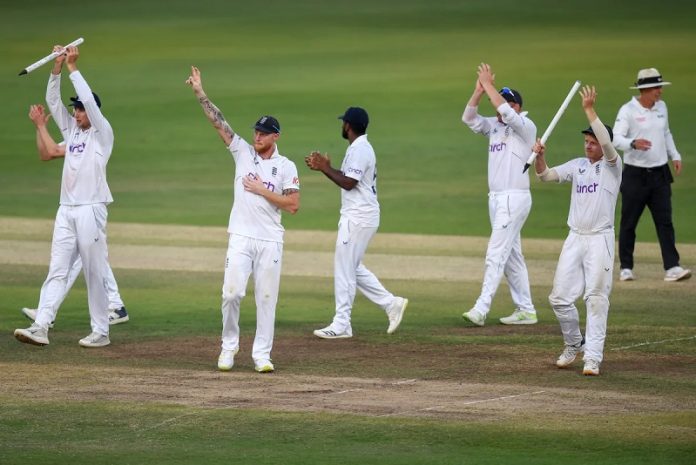 इङ्ग्ल्यान्डले पहिलाे टेस्ट क्रिकेटमा भारतलाई हराएकाे छ । पहिलाे इनिङ्समा १ सय ९० रनले पछि परेकाे इङ्ग्ल्यान्डले भारतलाई २८ रनले हरायाे । याेसँगै इङ्ग्ल्यान्डले ५ खेलकाे शृङ्खलामा १–० काे अग्रता लिएकाे छ । पहिलाे इनिङ्समा सय रनभन्दा धेरैकाे अग्रता लिएर भारतले हारेकाे याे पहिलाे पटक हाे ।