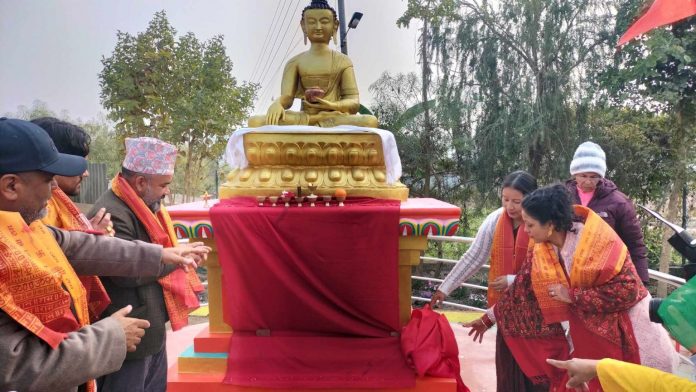 हेटौंडा । हेटौंडा उपमहानगरपालिका वडा नम्बर–४, कमलडाँडा नीवासी बरिष्ठ पत्रकार प्रताप विष्टका छोरा घोषणा विष्ट र सुजता कार्कीले आफ्नो विवाहको अवसरमा हेटौंडा–९ स्थित कुष्माण्ड सरोबर त्रिवेणीधाममा गौतम बुद्धको अष्टधातुको मूर्ति स्थापना गरेका छन् । बिवाहपछी पार्टीमा हुने फजुल खर्च नियन्त्रण गर्दै त्रिबेणीधाममा करीब १२ लाख बराबरको बुद्धको मुर्ति स्थापना गरेका हुन् ।