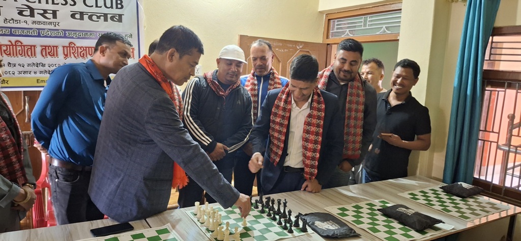 २८ चैत/हेटौंडा । बुद्धिचाल (चेस) खेलको विकास तथा नयाँ खेलाडी उत्पादन गर्ने उद्देश्यले हेटौंडा चेस क्लबले औपचारिक रूपमा प्रशिक्षण कार्यक्रम सुरु गरेको छ। बिहिवार हेटौंडा-४ वडा कार्यालय अगाडिको भवनमा बागमती प्रदेशका पुर्व मन्त्रि एवं प्रदेश सभा सदस्य एका लाल श्रेष्ठले प्रशिक्षण तथा प्रतियोगिताको उद्घाटन गर्नुभयो ।