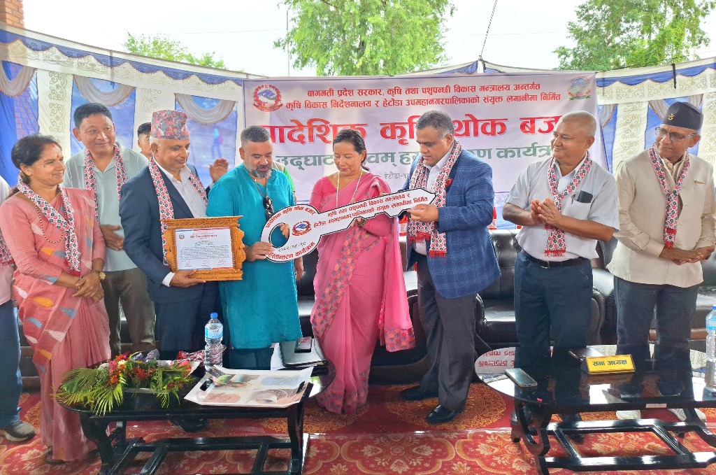 मकवानपुर, साउन १८ । बागमती प्रदेशको राजधानी हेटौंडामा निर्माण भएको प्रादेशिक कृषि थोक बजार उद्घाटन तथा हस्तारण गरिएको छ । बागमती प्रदेशका कृषि तथा पशुपंक्षी बिकासमन्त्री प्रकाश श्रेष्ठ र हेटौंडा उपमहानगरपालिकाका मेयर मिना लामाले आईतबार एक समारोहकाबीच थोक बजार उद्घाटन गर्नुभएको हो ।