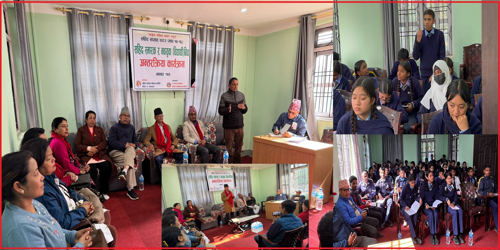 सहिदहरूको त्याग, बलिदान र योगदानलाई भावी पुस्तासम्म हस्तान्तरण गर्ने उद्देश्यले हेटौंडा ४ स्थित भुटनदेवी मावि, आधुनिक मावि र श्रमिक माविका विद्यार्थीहरुको सहभागितामा अन्तरकृया कार्यक्रम भएको हो । कार्यक्रममा सहिद स्मारकको ऐतिहासिक पृष्ठभूमि, महत्व र वर्तमान अवस्थाबारे छलफल गरिएको थियो ।