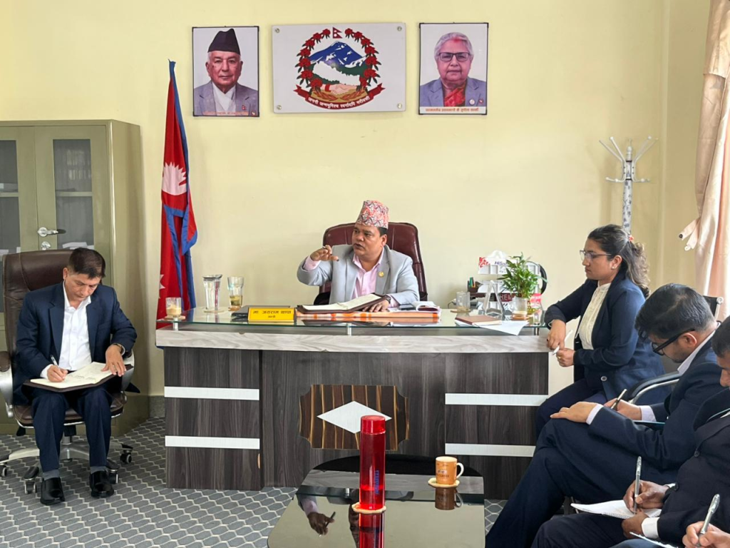 मन्त्रालयमा आयोजित समीक्षा बैठकमा महाशाखा प्रमुखहरूले प्रस्तुत गरेको पछिल्लो प्रगति प्रतिवेदन बुझ्दै मन्त्री थापाले मन्त्रालयको वार्षिक योजना अनुसारका कामहरू कुनै पनि कारणले रोकिन नहुने स्पष्ट पार्नुभयो। उहाँले विकास निर्माण, सेवा प्रवाह र नीतिगत कामहरूलाई समयमै सम्पन्न गर्न सबै कर्मचारीहरूलाई जिम्मेवार र उत्तरदायी बन्न आग्रह गर्नुभयो ।