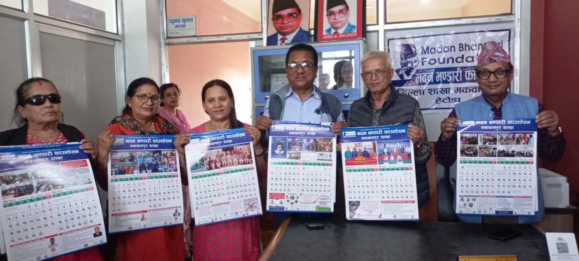 हेटौँडा, चैत १७ । मदन भण्डारी फाउन्डेसन जिल्ला शाखा मकवानपुरले प्रकाशन गरेको २०८३ सालको भित्तेपात्रो विमोचन गरेको छ । फाउन्डेसन मकवानपुरको कार्यालयमा मंगलबार आयोजित एक कार्यक्रममा भित्तेपात्रो विमोचन गरिएको हो ।
