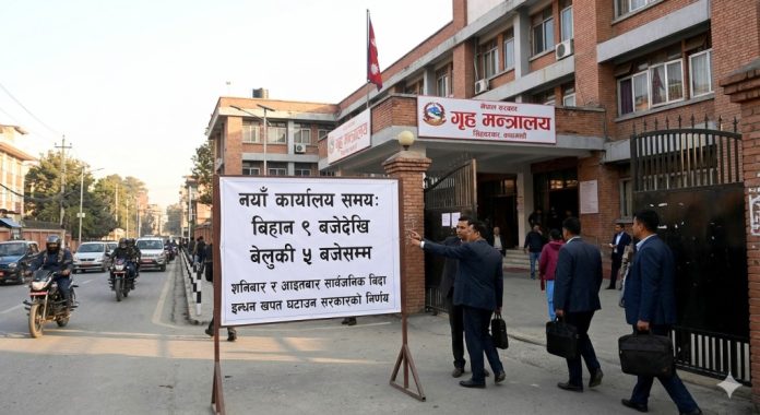 हिजोको मन्त्रिपरिषदले गरेको यही निर्णयअनुसार आजदेखि सरकारी कार्यालय तथा सार्वजनिक निकाय सञ्चालनको समय बिहान ९ बजेदेखि बेलुकी ५ बजेसम्म कायम हुनेछ । मन्त्रिपरिषदको निर्णय गृह मन्त्रालयले हिजो नै राजपत्रमा प्रकाशन गरेर सरकारी कार्यालय, सार्वजनिक निकाय तथा शैक्षिक संस्थाहरूमा शनिबार र आइतबार बिदा दिने, शैक्षिक संस्थाबाहेक कार्यालय तथा निकायहरू सञ्चालनको समय आजदेखि बिहान ९ बजेदेखि बेलुकी ५ बजेसम्म कायम हुने जनाएको हो । कात्तिक १६ गतेदेखि माघ १५ गतेसम्म भने कार्यालय समय बिहान ९ बजेदेखि दिउँसो बजेसम्म कायम गर्ने राजपत्रमा उल्लेख छ ।