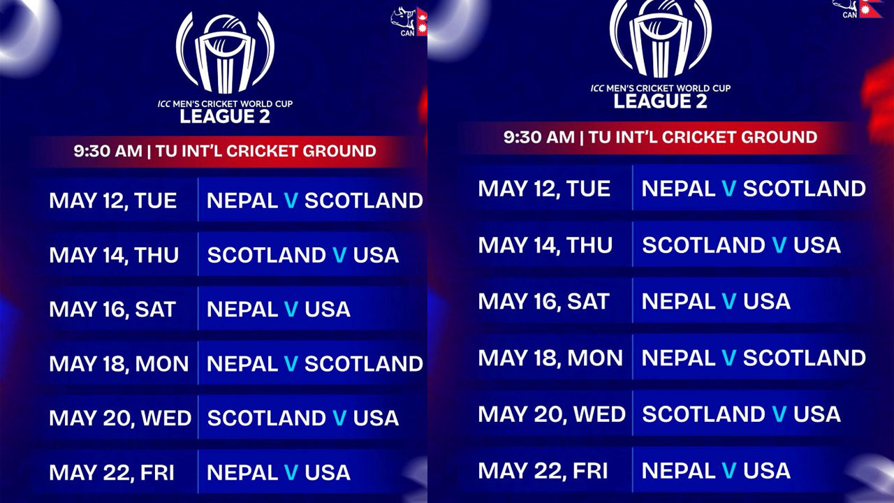 पहिलो शृङ्खला सकिएपछि अर्को हप्ता नेपाल, स्कटल्यान्ड र अमेरिकाबीच लिग–२ अन्तर्गतका खेलहरू हुनेछन् । नेपालले वैशाख २९ गते स्कटल्यान्डसँग, जेठ २ गते अमेरिकासँग, जेठ ४ गते पुनः स्कटल्यान्डसँग र अन्तिम खेल जेठ ८ गते अमेरिकासँग खेल्नेछ ।
