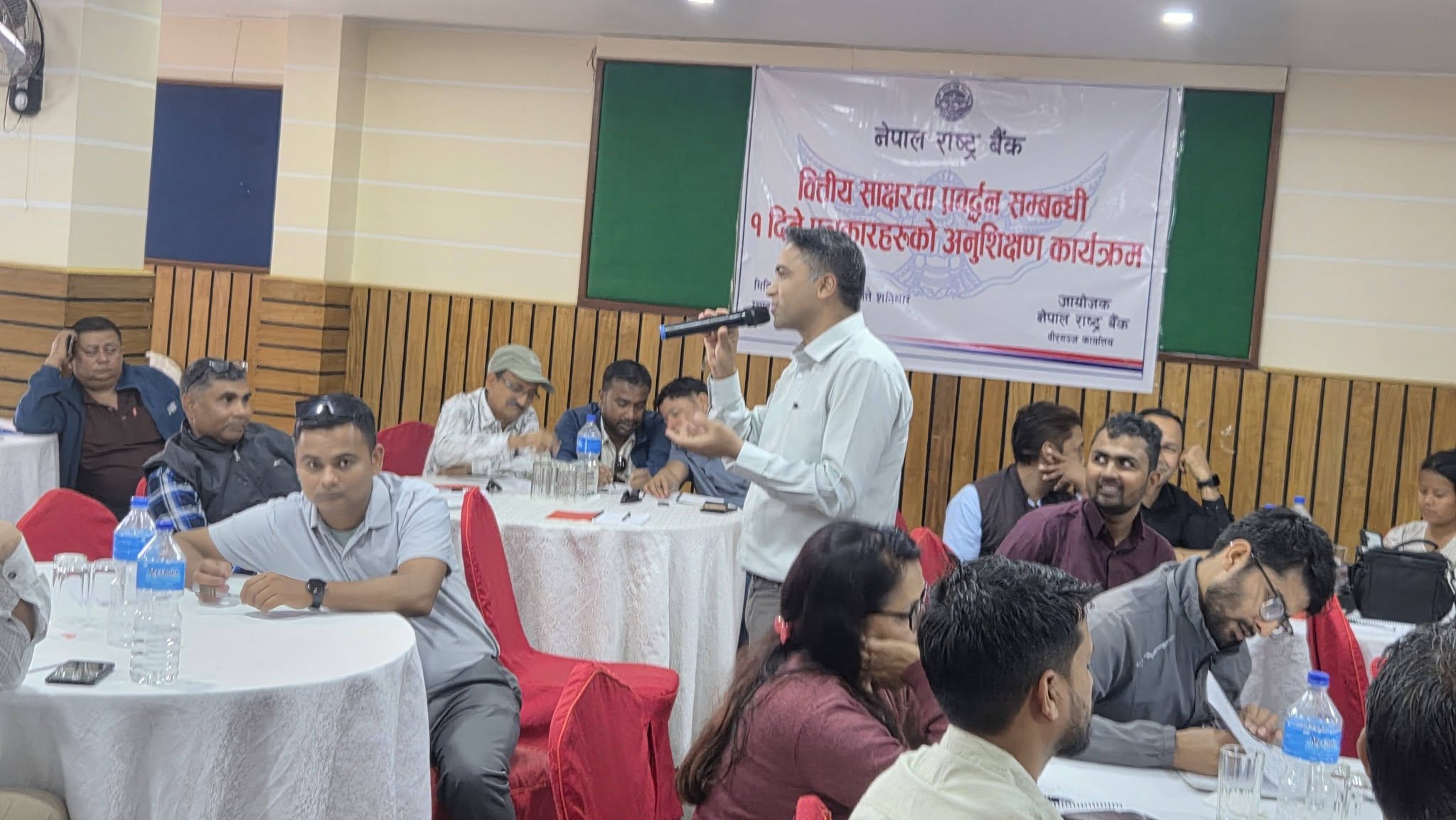 कार्यक्रममा बैंकका सहायक निर्दैशक बिनय केसरीले डिजिटल बैंकिङ्ग र सुरक्षाका वियायमा जानकारी दिनुहुँदै आधुनिक समयमा भुक्तानीका डिजिटल माध्यमहरू मोबाइल बैंकिङ्ग, इन्टरनेट बैंकिङ्ग, कार्ड र वालेटको सही प्रयोगबारे जानकारी दिनुभयो । साथै, उहाँले नेपालमा दैनिक ५४ वटा अनलाईन ठगीका घटना हुने गरेको भन्दै वित्तीय अपराध, ठगी र भ्रमबाट बच्न वित्तीय अनुशासन र सूचनाको संस्कृतिको विकास गर्नुपर्ने बताउनुभयो । उहाँले यसका लागि पत्रकारको महत्वपूर्ण भुमिका हुनेमा जोड दिनुभयो ।