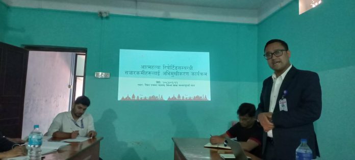 हेटौंडा, बैशाख ११ । आत्महत्यासम्बन्धी समाचारलाई संवेदनशील र जिम्मेवार ढंगले सम्प्रेषण गर्ने उद्देश्यले अभिमुखीकरण कार्यक्रम सम्पन्न भएको छ । शुक्रबार जनस्वास्थ्य कार्यालय मकवानपुरको आयोजनामा नेपाल पत्रकार महासंघ मकवानपुरको सभाहलमा कार्यक्रम सम्पन्न भएको हो ।